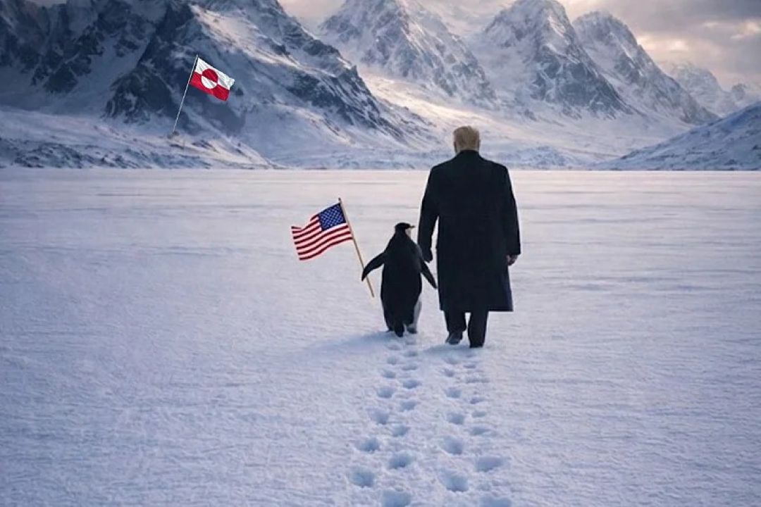 Na umjetnom inteligencijom generisanoj fotografiji Trump vodi pingvina koji nosi američku zastavu na terenu, koji bi trebao predstavljati Grenland, uz opis “Prigrli pingvina”.
