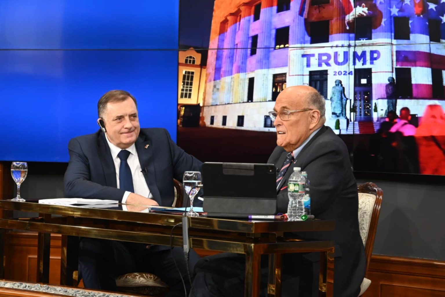 Podkast koji bivši gradonačelnik Njujorka Rudi Đulijani snima sa predsjednikom Republike Srpske Miloradom Dodik počeo je u Palati Republike.