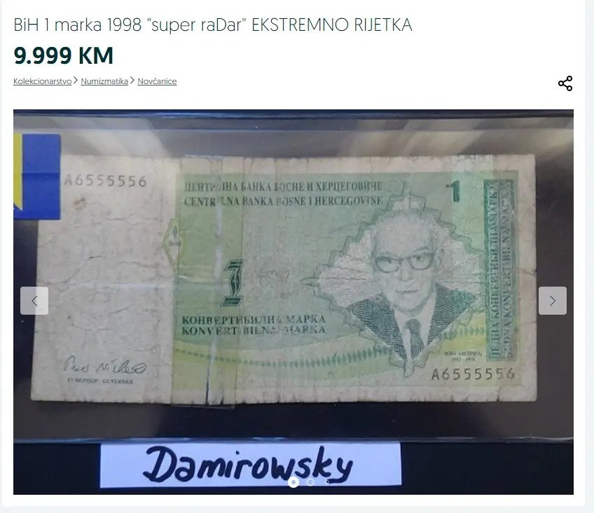 Na stranici za online prodaju OLX ponuđena je na prodaju novčanica koju je 1998. godine u promet pustila Centralna banka BiH a za koju prodavač traži 10.000 KM.