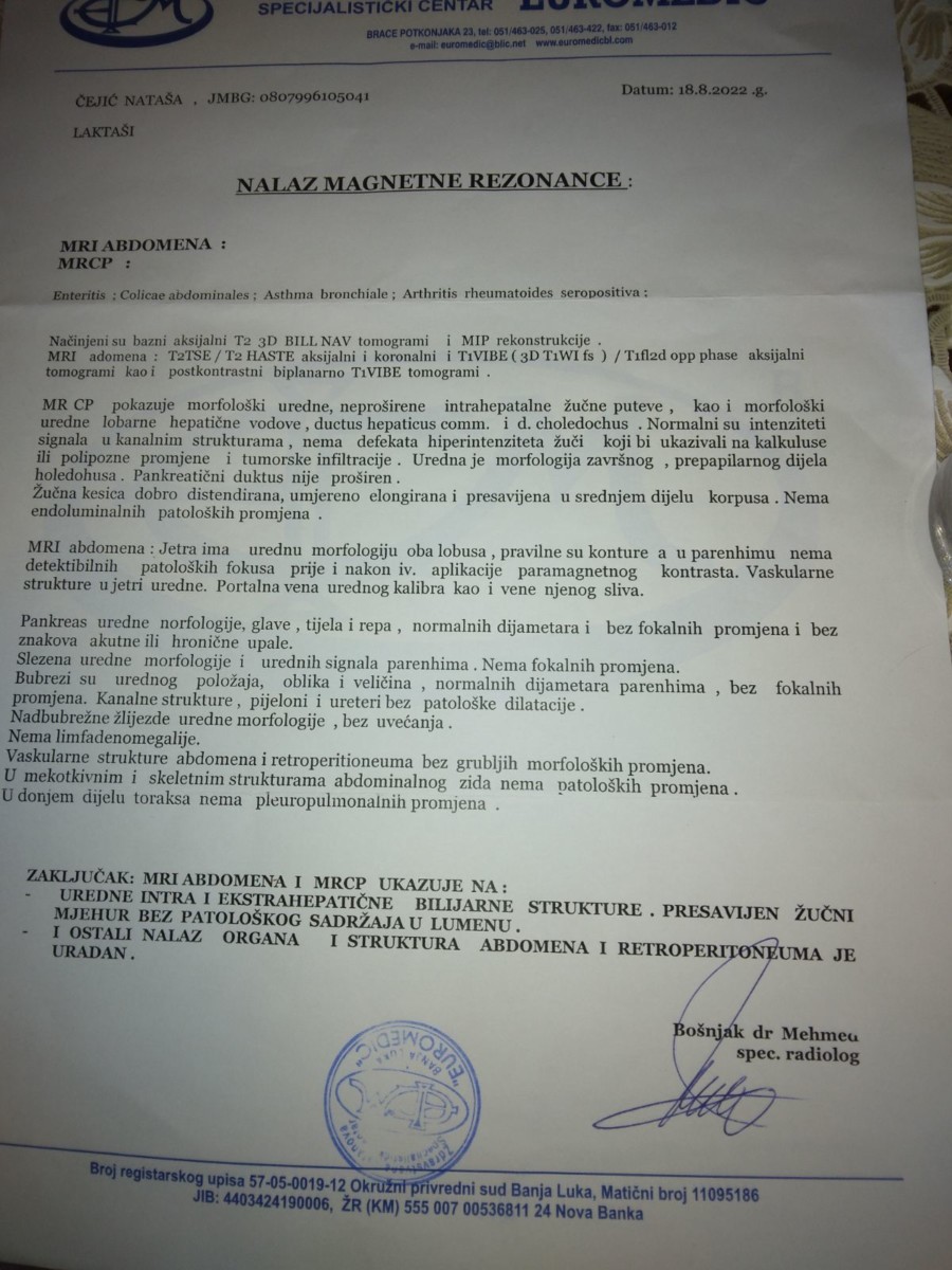 – Nakon hodanja po bolnicma i laboratorijama, ustanovljeno je imam presavijenu žučnu kesu, dijagnostifikovan mi je giht, metabolički poremećaj, masna jetra i hiberinzulizam. Zbog svega toga ne mogu normalno da funkcionišem i narušeno mi je zdravlje – kazala je Nataša za vecernjenovosti.ba.