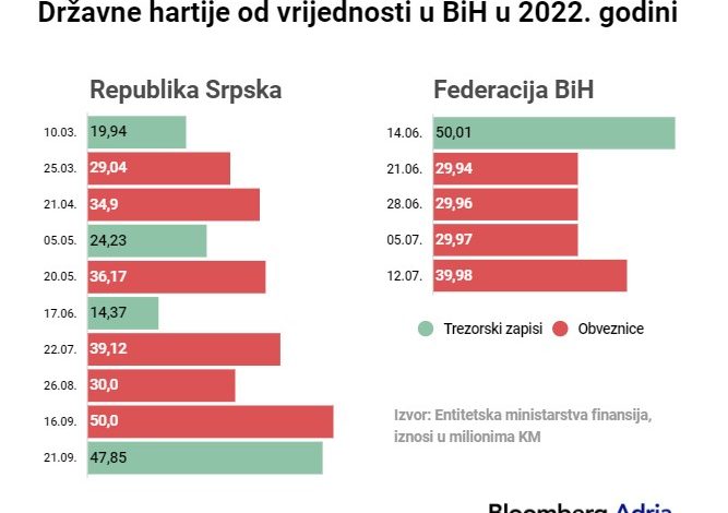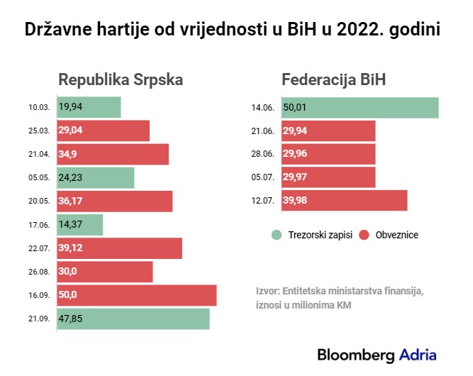 Vlade entiteta u Bosni i Hercegovini (BiH) različitim intenzitetom posežu za zaduživanjem na berzi, odnosno za prodajom obveznica ili trezorskih zapisa.