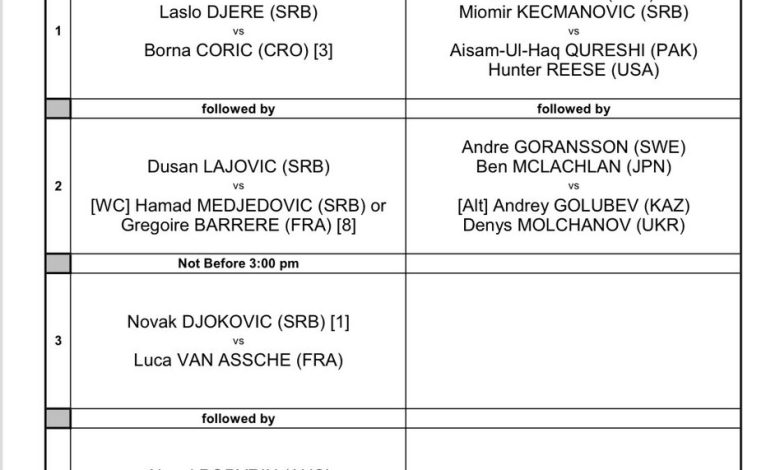 Tako će Đoković u iščekivanju meča sa mladim Francuzom Lukom Van Ašom ispratiti duele Đerea i Ćorića koji otvaraju dan, a poslije je na programu duel drugog predstavnika Dušana Lajovića.