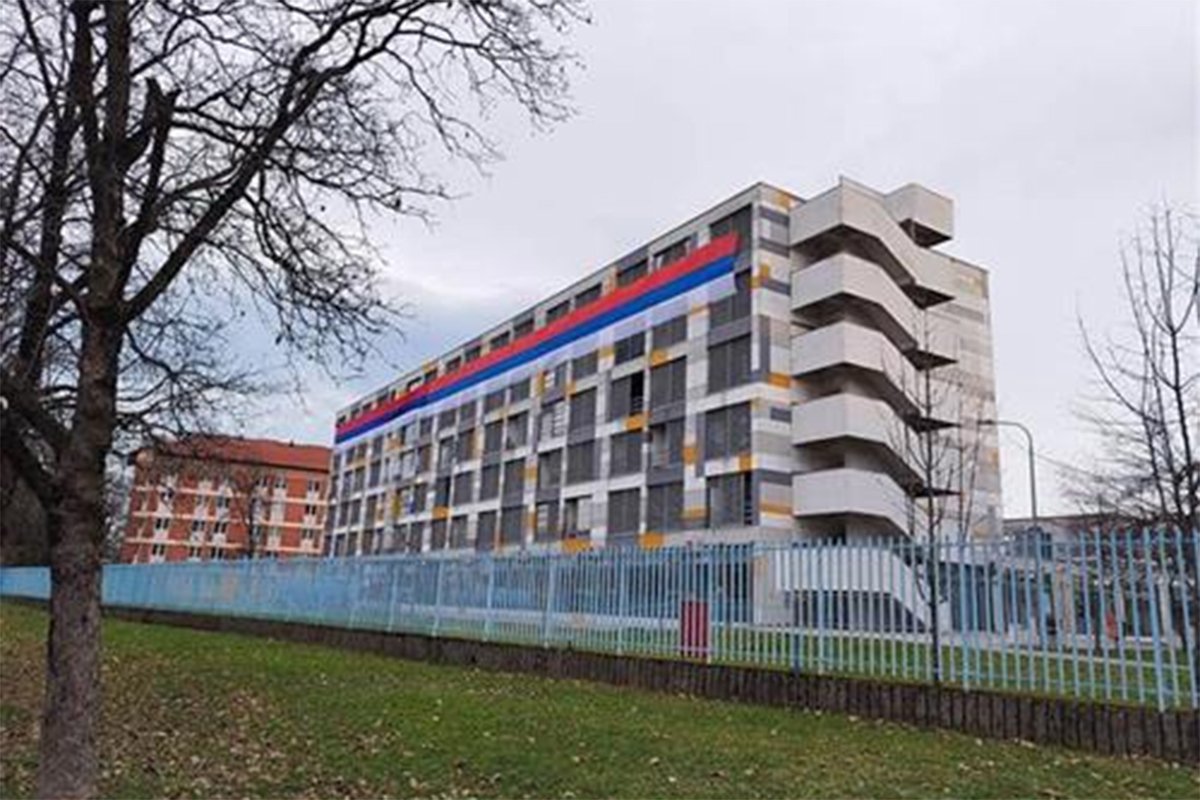 Studenti su zastavu istakli dužinom cijelog četvrtog paviljona.