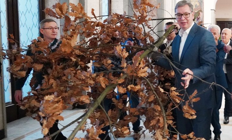 Predsjednik Srbije Aleksandar Vučić unio je u prisustvu mališana iz Rumunije i Crne Gore badnjak u zgradu Predsedništva, poručivši da je ponosan na to što se Srbija iz te zgrade borila za srpski narod, posebno na Kosovu i Metohiji, što će činiti i ubuduće, te čestitao 9. januar, Dan Republike Srpske.